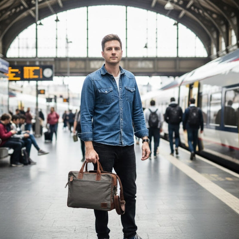 Du möchtest auch im Büro stylisch unterwegs sein und legst keinen allzu großen Wert auf bürokratische Spießigkeit? Dann ist unsere Aktentasche LE3066 wie für dich gemacht! Denn die Arbeitstasche ist aus Canvas gefertigt und erhält dadurch ihren sportlichen Look. Die Tasche ist in verschiedenen Farben verfügbar - da ist für jeden Geschmack das richtige dabei. Applikationen aus Leder unter anderem an Henkeln und Tragegurt werten die Bürotasche aus und veredeln deinen Auftritt. Zudem sorgt das natürliche Material für guten Halt und besten Tragekomfort. Dank des praktischen Formats der Unisex-Tasche ist es kein Problem A4-Unterlagen und den Laptop darin zu verstauen. Zudem verfügt die Aktentasche über eine Halterung für den Trolley, sodass du sie bei Geschäftsreisen praktisch am Koffer befestigen kannst. Das beste Mittel gegen den Büroblues? Unsere LE3066, denn mit ihr macht der morgendliche Gang in die Arbeit um ein vielfaches mehr Spaß!