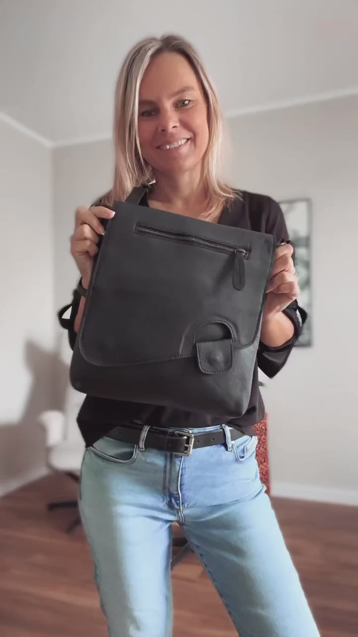 Diese Umhängetasche aus softem, schwarzem Ziegenleder ist wie gemacht für deinen Alltag: leicht, elegant und mit cleverer Aufteilung. Das Leder fühlt sich angenehm weich an, ist langlebig – und vollkommen geruchsfrei. Egal ob auf dem Weg ins Büro oder beim Treffen mit Freunden: Unter dem Überschlag mit praktischer Magnetschlaufe liegt ein sicheres Hauptfach mit Reißverschluss. Innen sorgt ein separates Reißverschlussfach für Ordnung, außen findest du weitere Fächer auf Vorder- und Rückseite. Dank des verstell- und abnehmbaren Riemens trägst du die Tasche genau so, wie es dir am liebsten ist. Der weiche Innenstoff schützt deine Essentials und rundet das hochwertige Design ab. Eine Tasche, die mit dir mithält – und dabei immer gut aussieht.